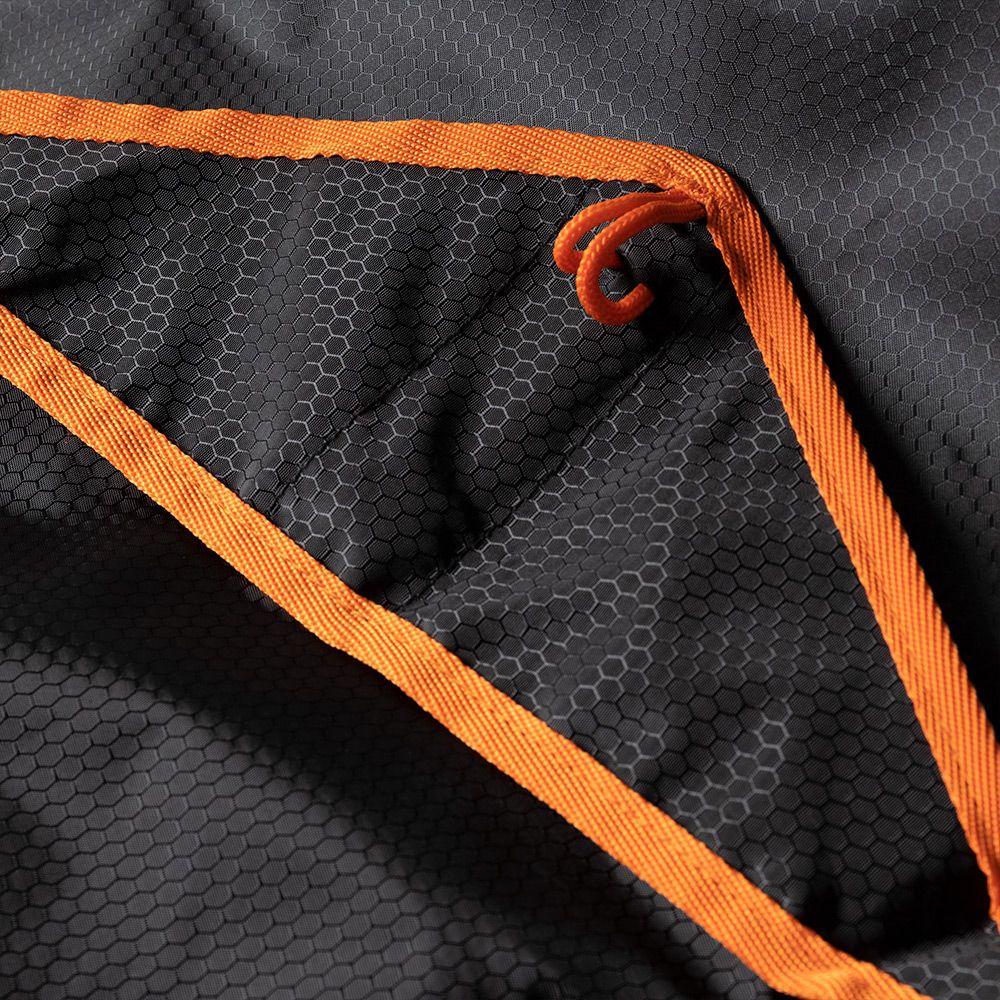 Not your ordinary blanket. Quick drying, water-resistant and puncture-resistant. Featuring weighted corners, sand pockets and integrated corner stakes for windy days. Made for easy repacking. Measures 210cm point to point.