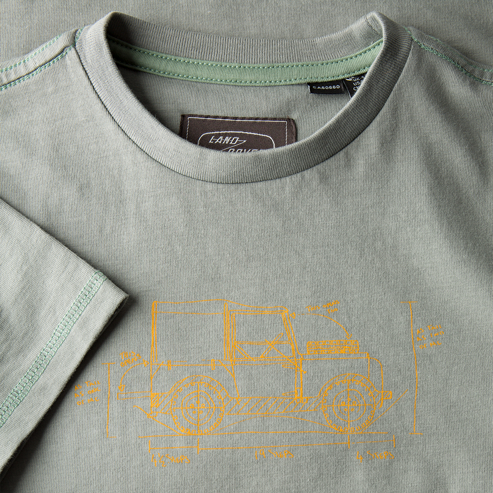 With an effortlessly cool technical drawing of the famous Land Rover HUE 166 Defender across the chest and the famous HUE 166 style number plate tag featured at the bottom, your little lad can run around beaming with pride.