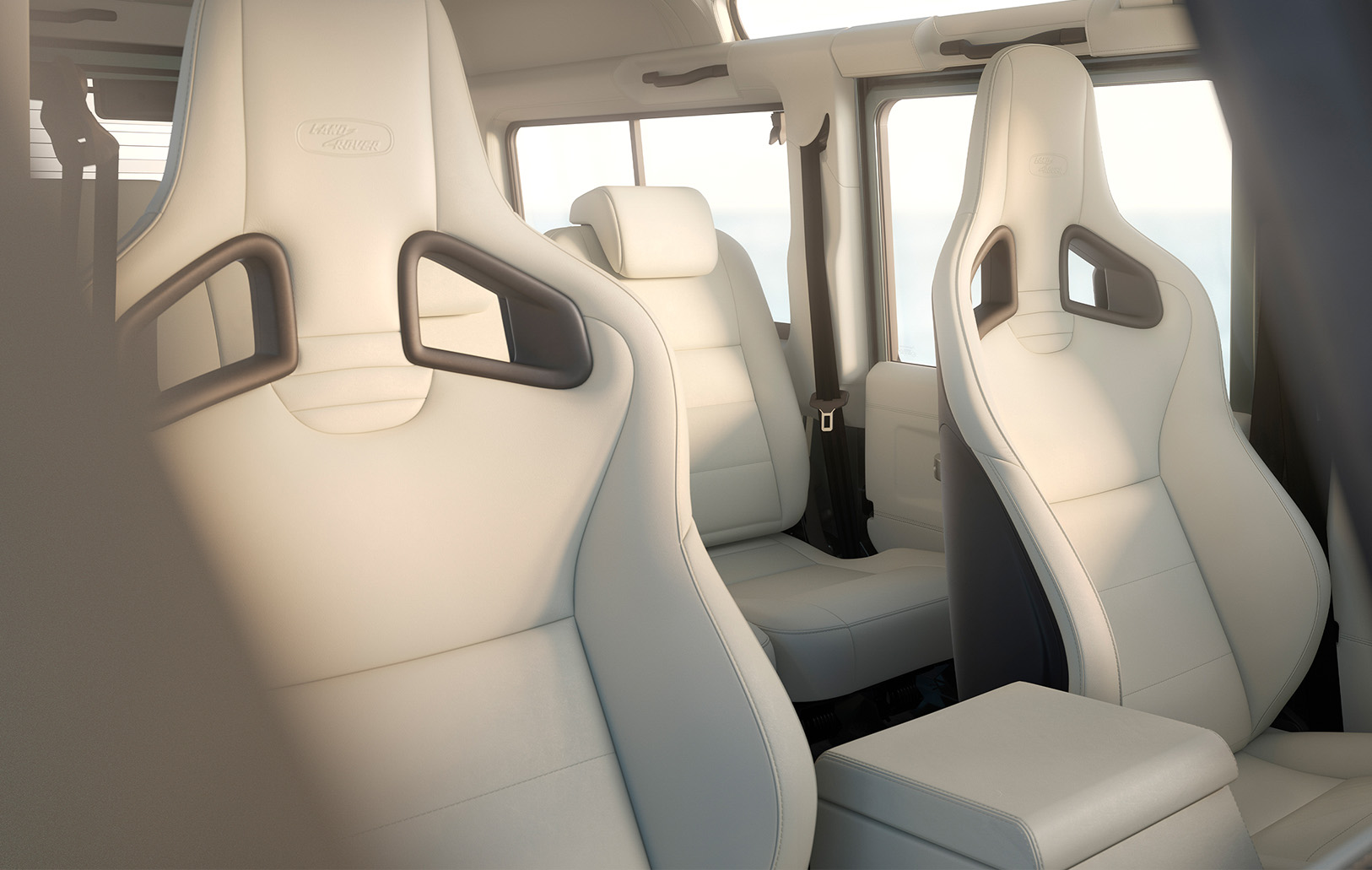 Each Classic Defender V8 spends over 300 hours in our paint shop. Additional bespoke interior options now include lightweight Ultrafabrics™ PU in Khaki Green, Light Cloud and Lunar, alongside Burnt Sienna semi-aniline leather. To match Defender OCTA Black, Ebony leather is available too.