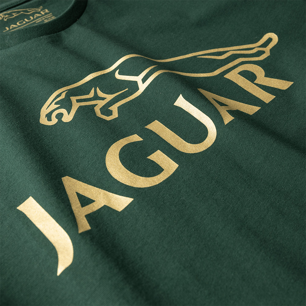 Classic Jaguar T-shirt redesigned with clean utilitarian look. Uniquely crafted from soft organic cotton. Makes a perfect addition to the classic sports bag. Features ribbed crew neck with side-splits and Jaguar Leaper logo.