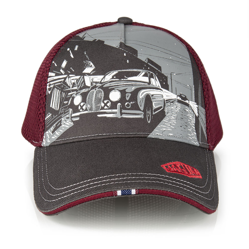 Adjustable trucker cap featuring Jaguar Mark II 'Ultimate Getaway Car' dynamic graphic. Sports embroidered Heritage logo to the peak and Heritage stripe detail.