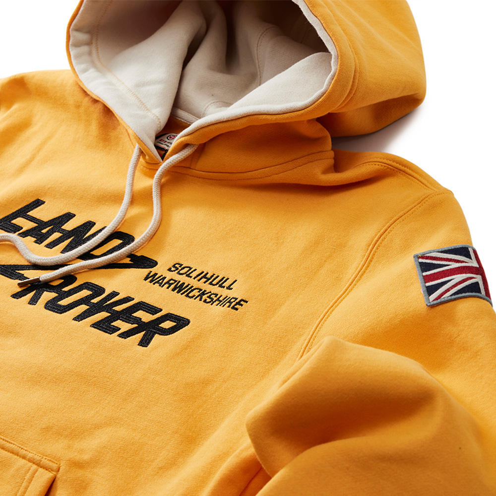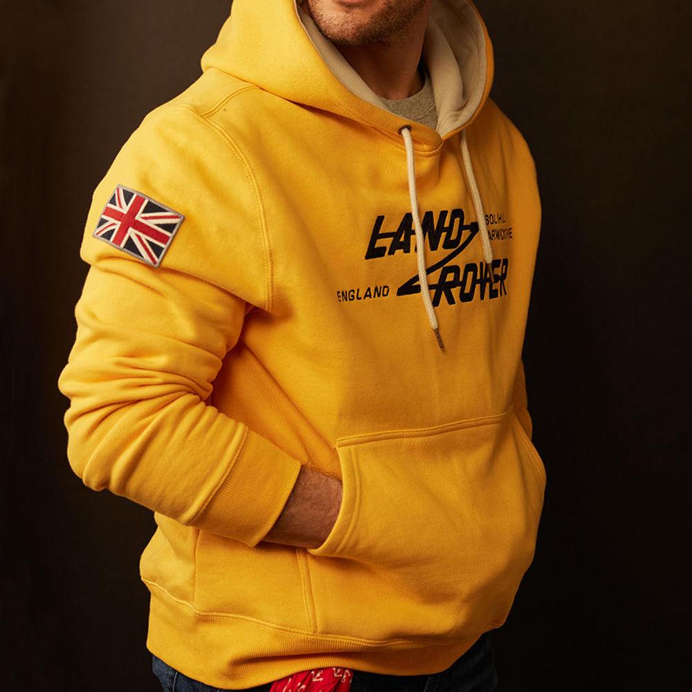 Adorned with the original Land Rover chain-stitched logo on the front and a woven patch on the shoulder, this hoodie seamlessly blends heritage with contemporary style.