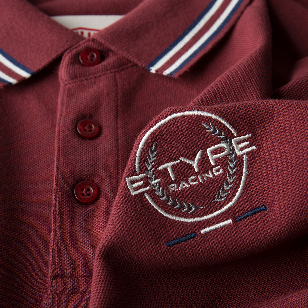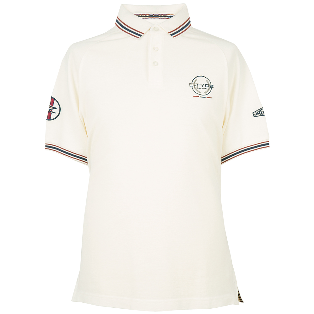 Men's Polo Shirt. 100% cotton. Features E-Type Lightweight Racing branding, 23 Roundel badge and racing stripe detailing. Choose from Cream, Navy and Red. Available in sizes XS to XXXXL.