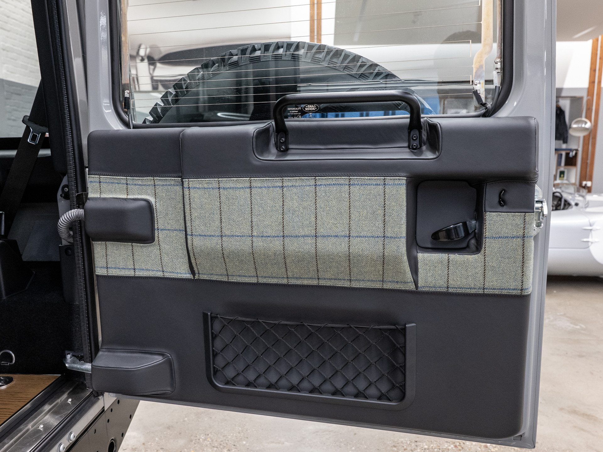 Inside, every detail reflects a deep connection to Islay. The seats, door trims, centre armrest and sun visor are upholstered in a tactile tweed woven by the Islay Woollen Mill. Its natural palette blends blue for sea and sky, purple for the island’s heather and a soft yellow inspired by the peat landscape. A plaque beside the gear selector tells the story of how the Land Rover name came to be, adding a subtle but meaningful link to the brand’s origins.