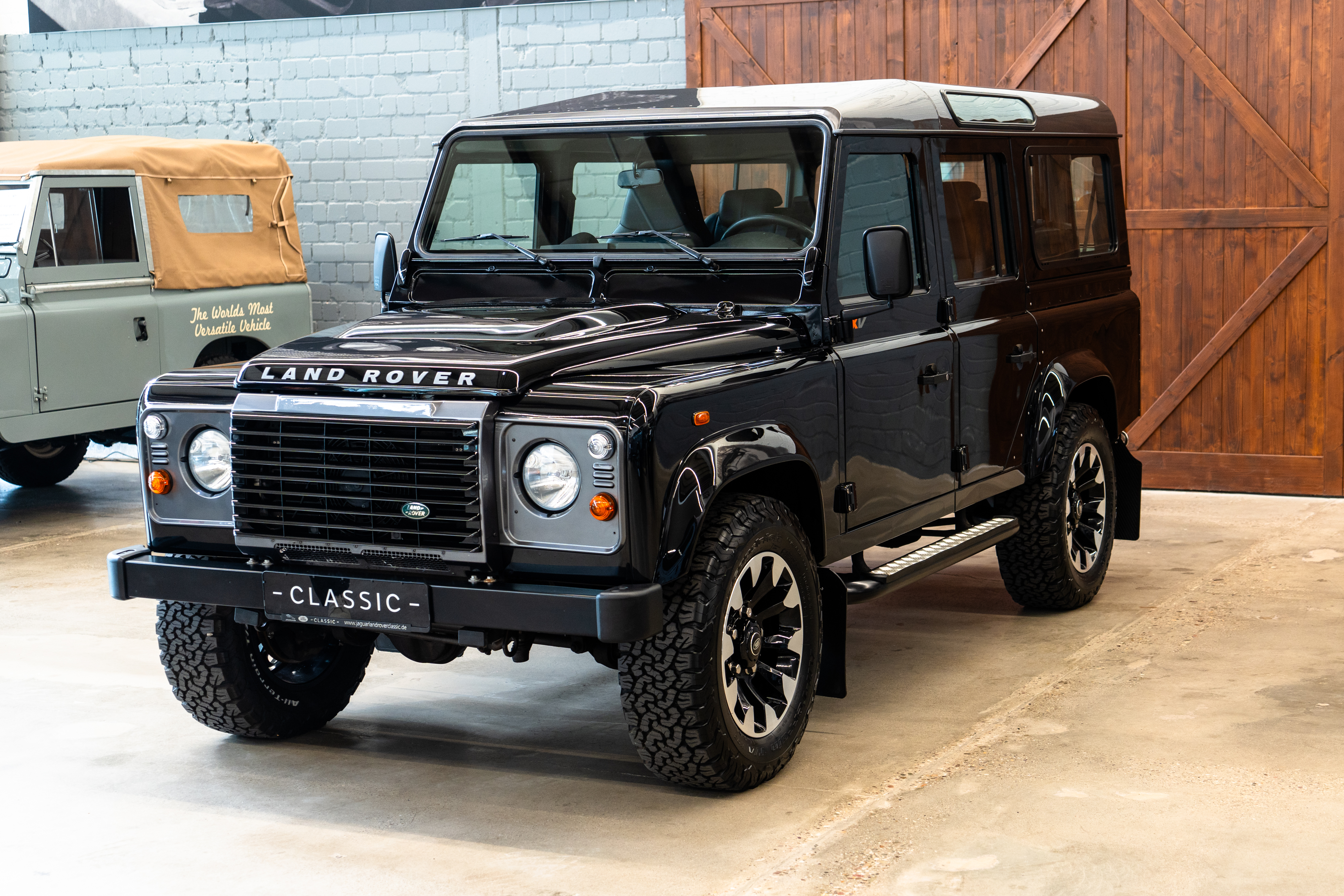 Exclusively upgraded by Land Rover Classic Essen, the Works Upgrade Kit features 18‑inch Saw Tooth LM wheels, Alcon braking system, Bilstein shock absorbers, Eibach springs and TÜV registration carried out by Land Rover Classic Essen.