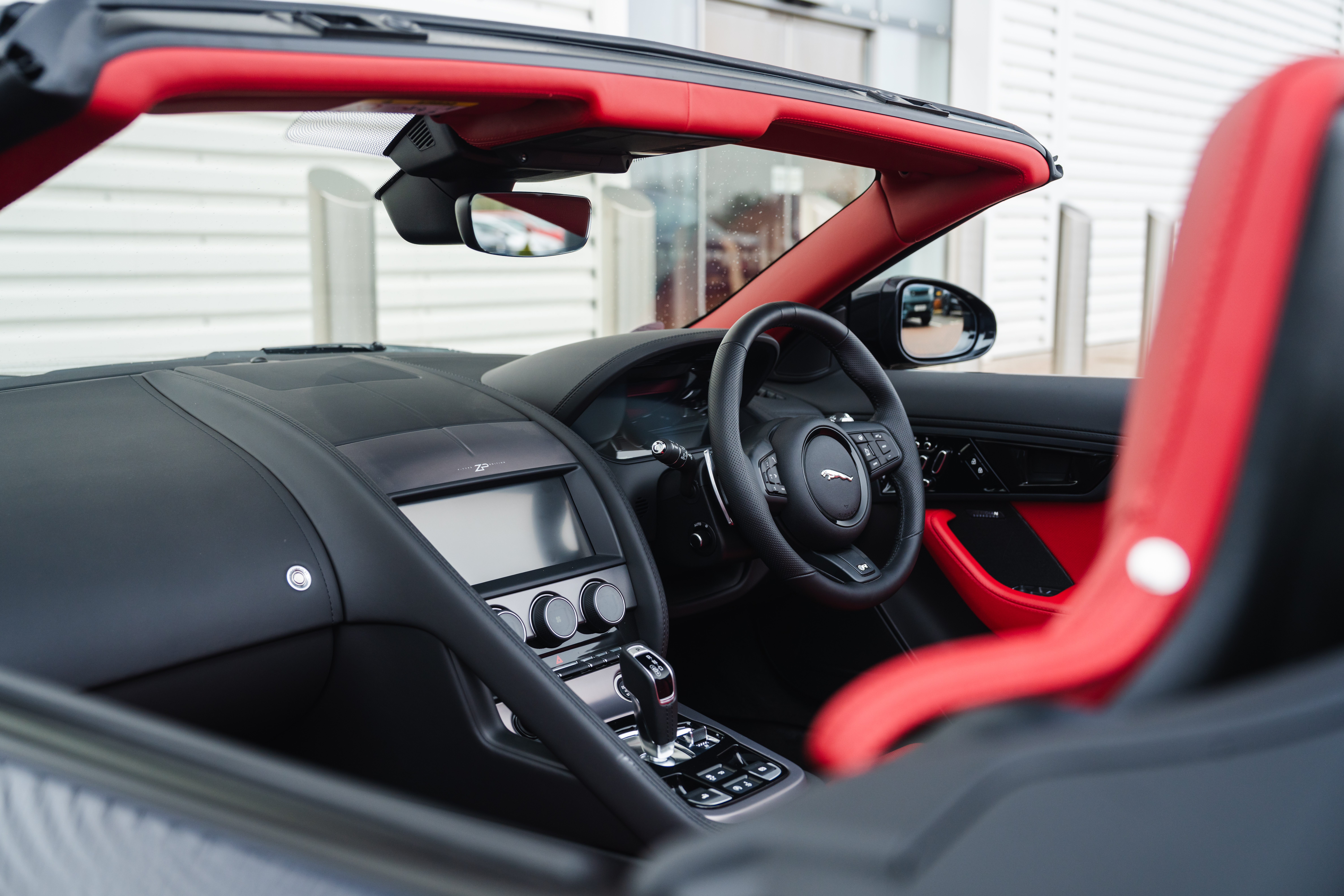 Unique interiors with horizontal seat fluting, along with Gloss Black exterior accents and Gloss Black brake calipers, complemented exclusive F‑TYPE ZP Edition branding on the fenders, Gloss Black Diamond‑Turned 20‑inch forged alloy wheels, tread plates and dashboard. Each car carried a ‘One of 150’ SV Bespoke commissioning plaque.