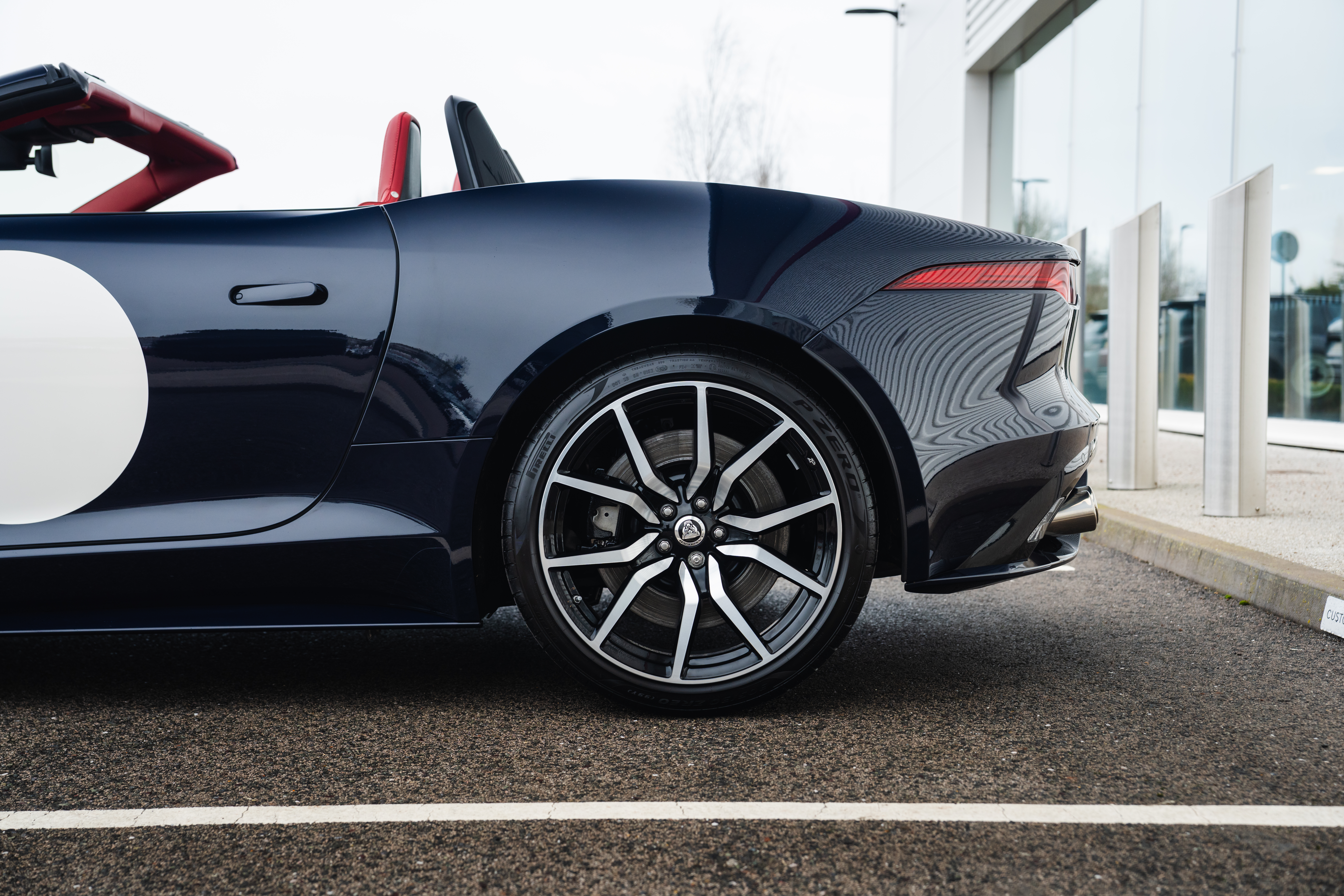 The ZP Edition was the ultimate celebration of that lineage, joining an illustrious roster of heritage‑inspired collector’s editions including the 2015 Project 7 and the 2020 Heritage 60 Edition. Two F‑TYPE ZP Edition colourways were offered, recalling the first race‑winning ‘Project ZP’ E‑types campaigned shortly after the model’s launch in 1961: Oulton Blue Gloss paint with a Mars Red and Ebony duotone leather interior, or Crystal Grey Gloss paint with a Navy Blue and Ebony duotone leather interior. Both featured Porcelain White Gloss hand‑painted racing‑style roundels on the doors and Porcelain White Gloss grille surrounds.