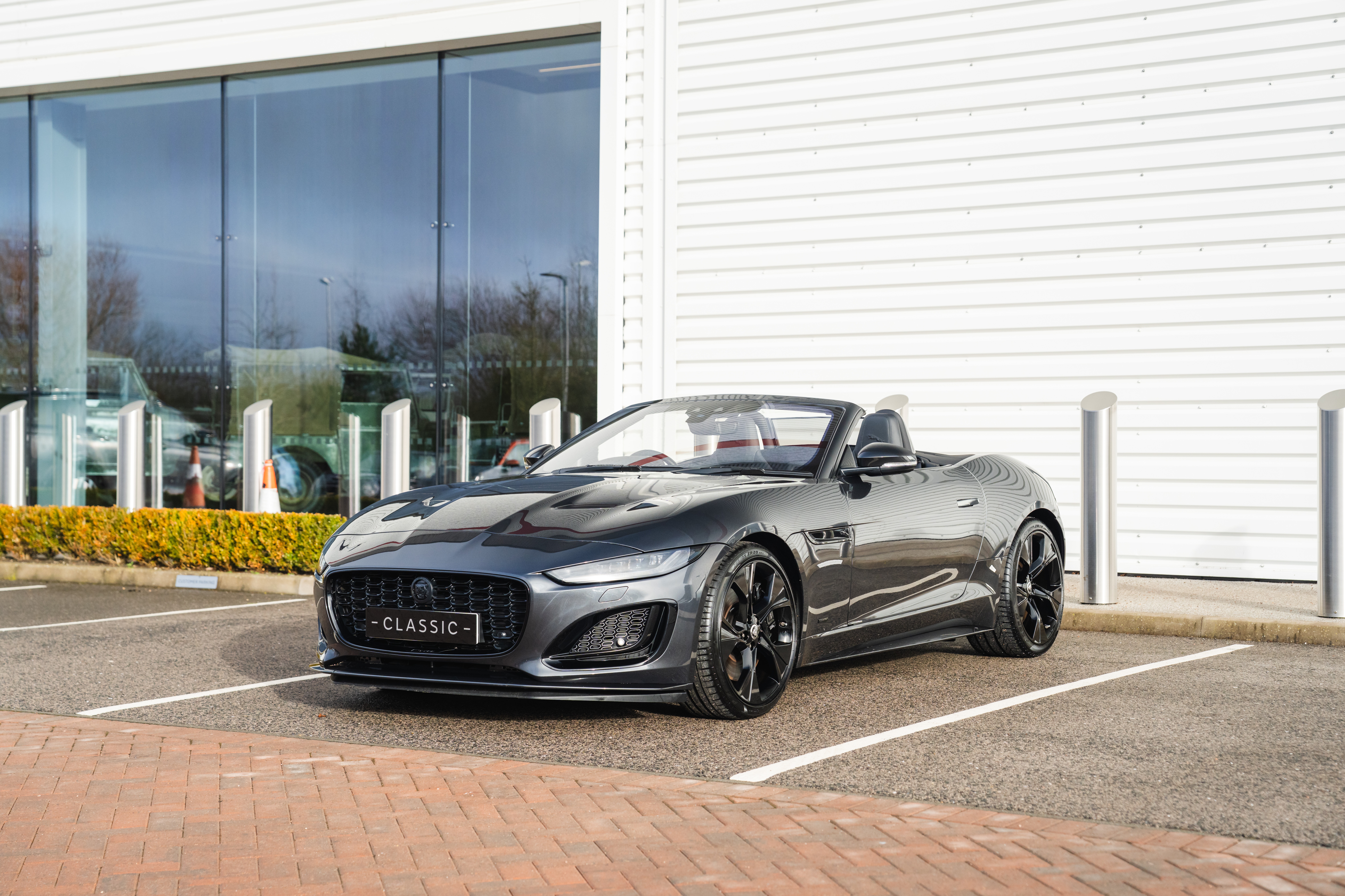 This particular vehicle is the F-type R 75 roadster, featuring the 450 PS 5.0 V8 engine. Finished in Carpathian Grey metallic paint with Ebony Windsor leather interior the car has covered just under eight thousand miles. The vehicle has been retained by JLR from new and is now available to purchase, directly from Jaguar Classic. The car comes with the balance of the Jaguar three-year warranty (until March 2027).