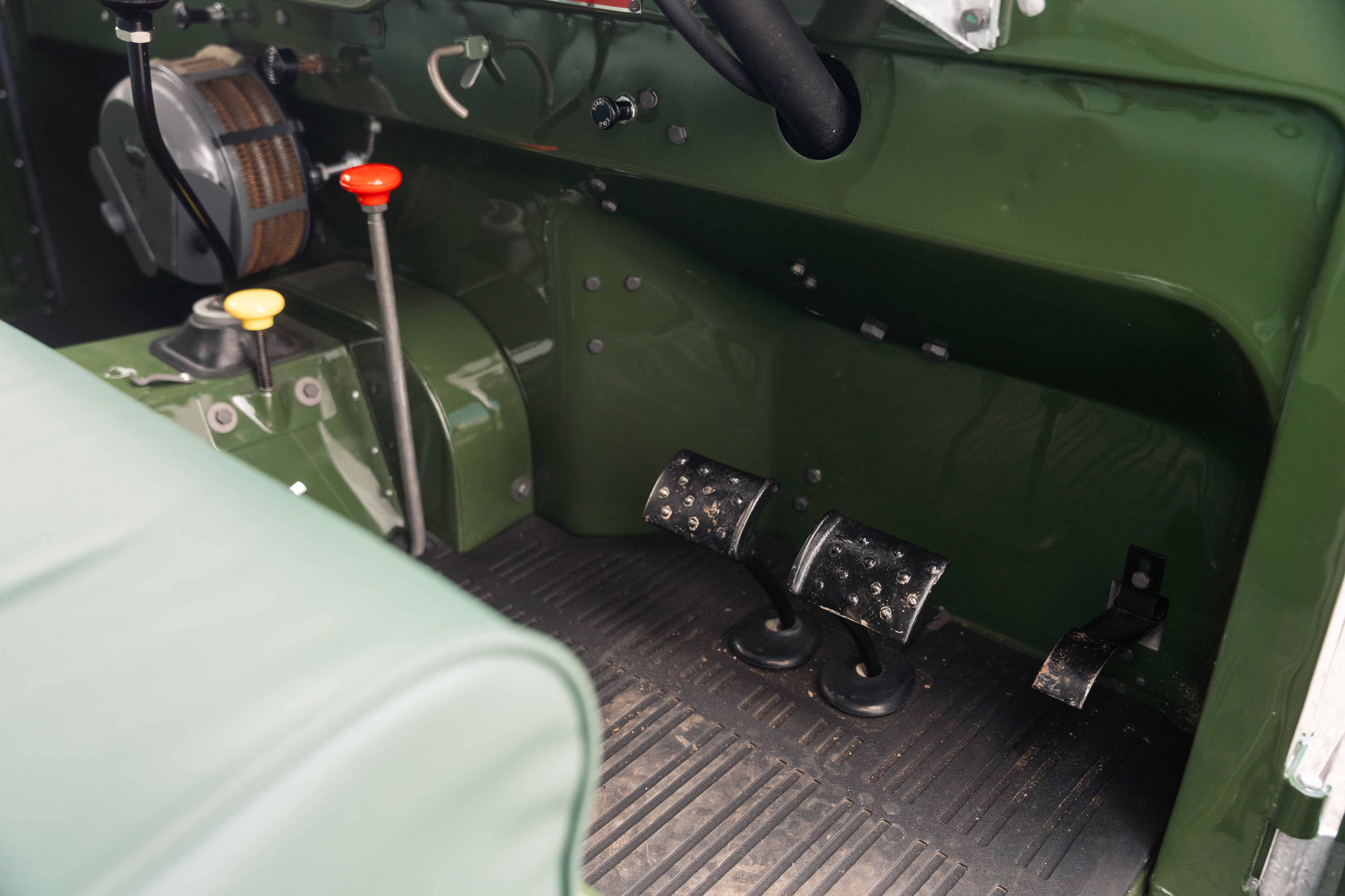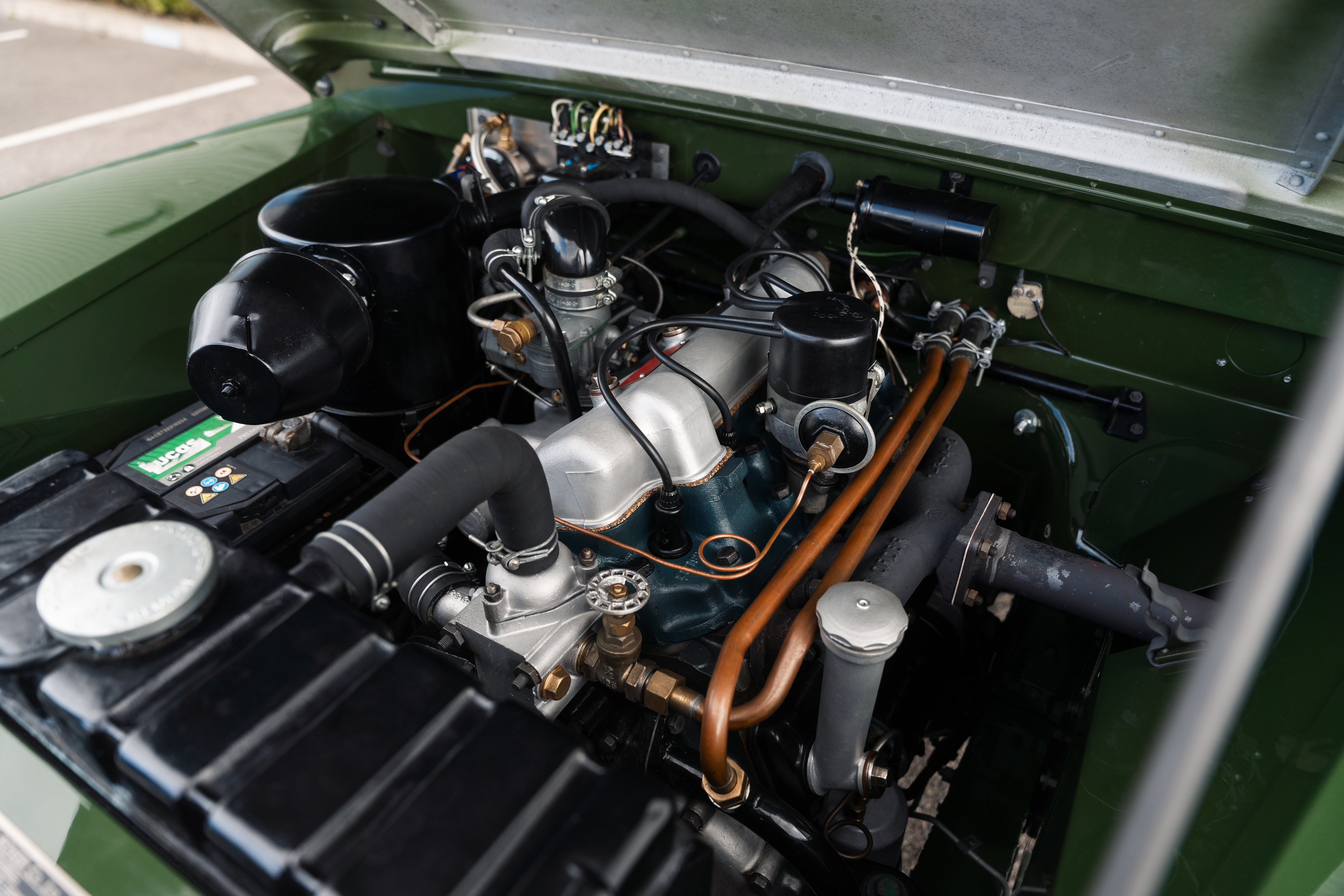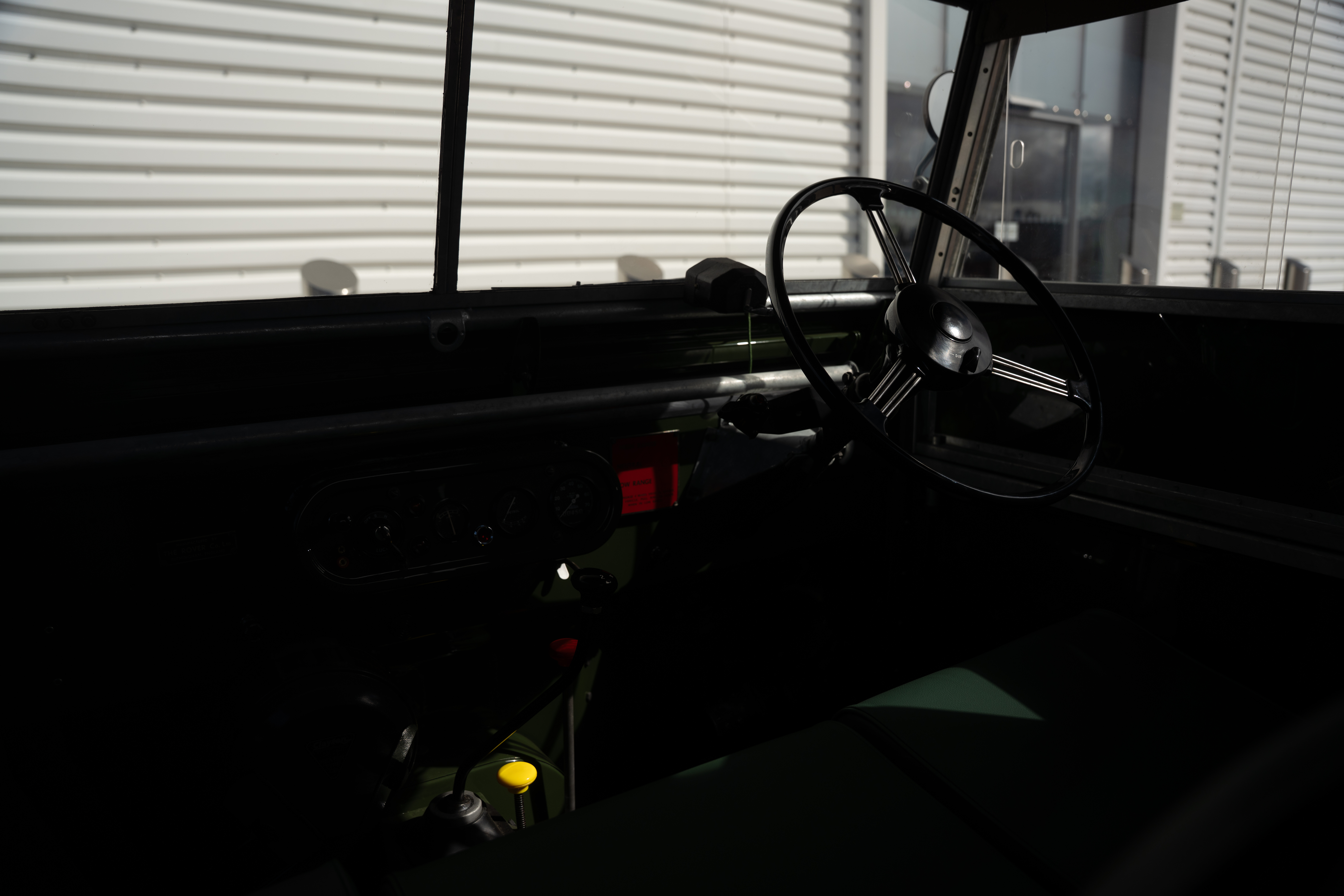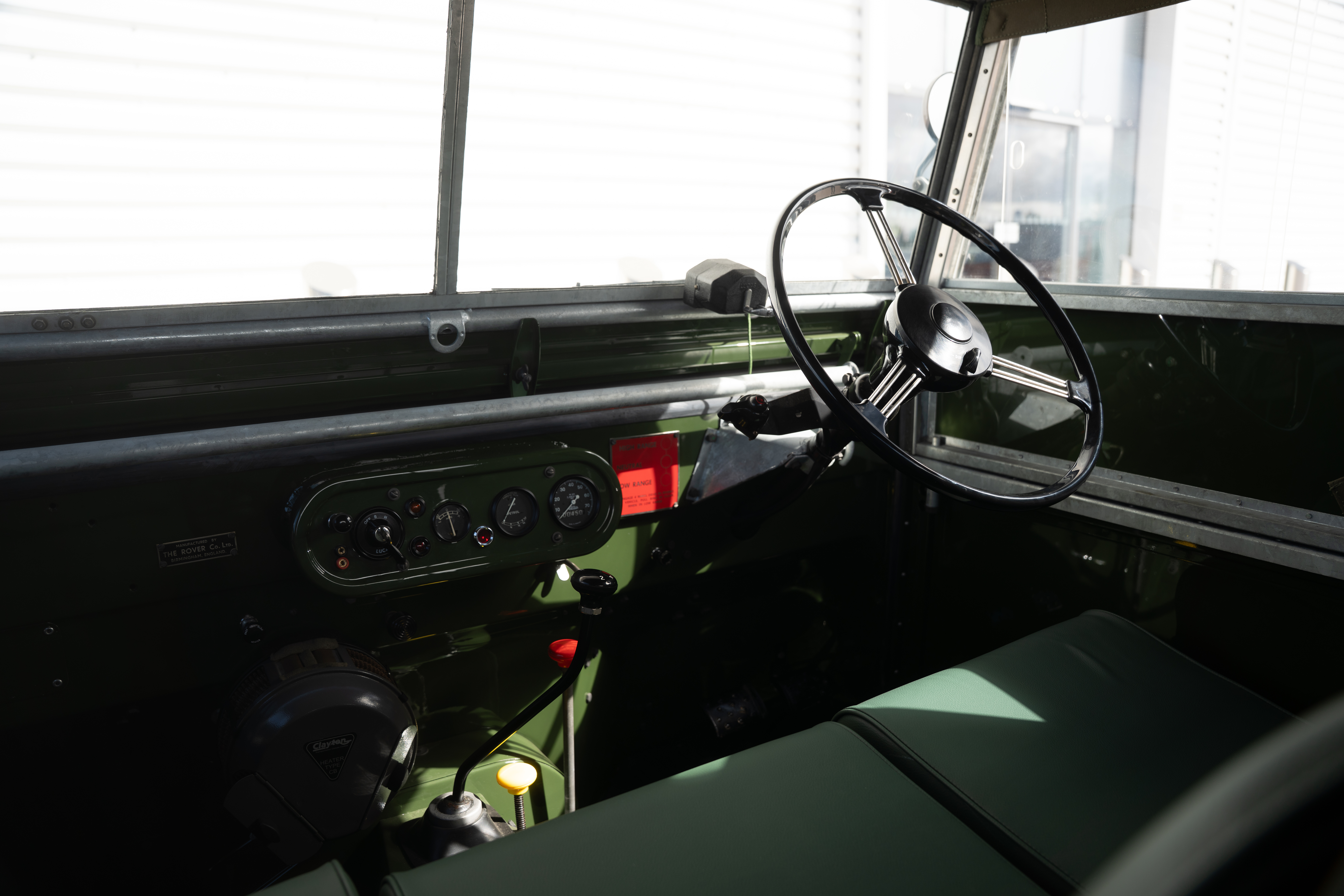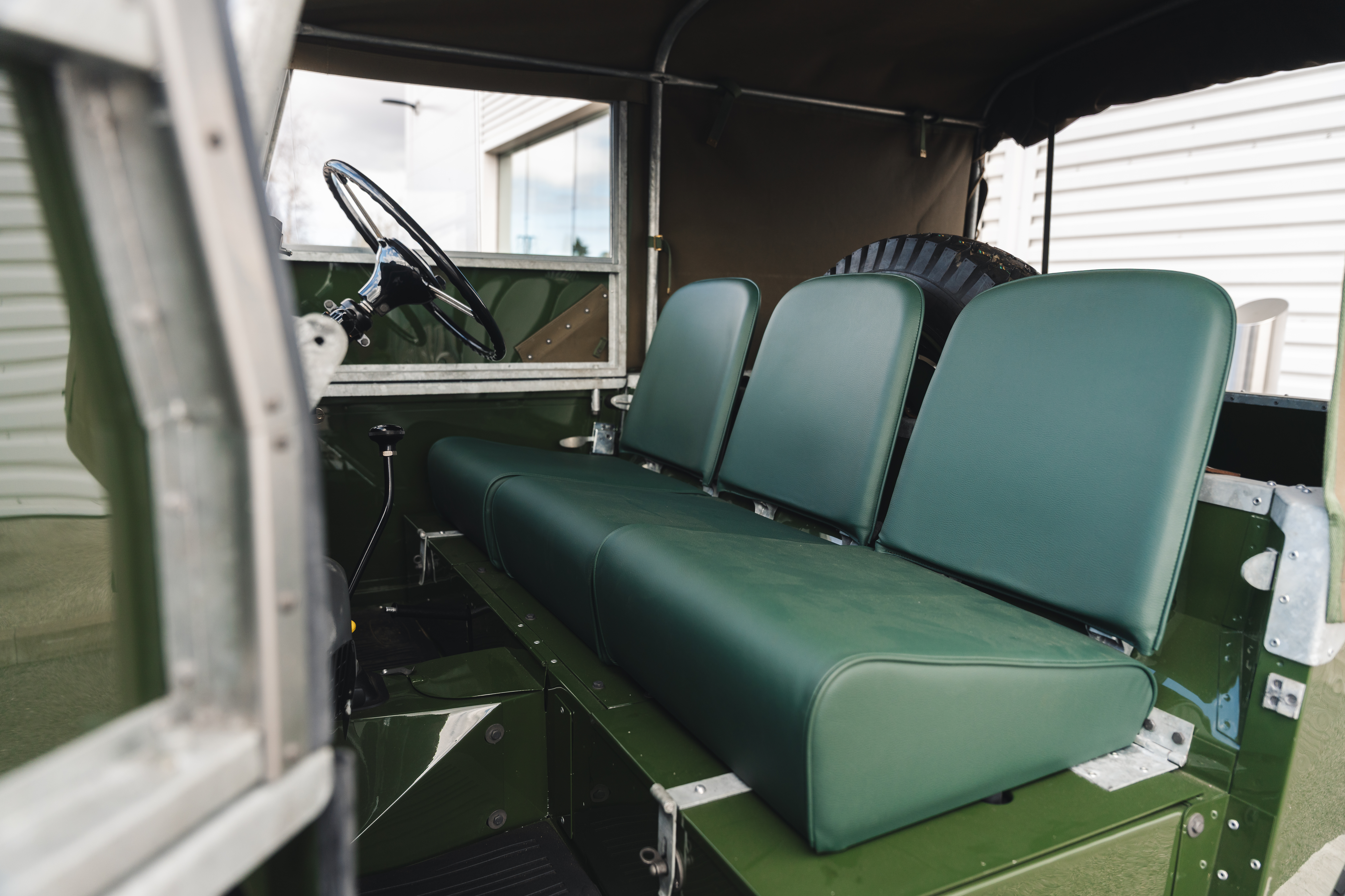 This particular car, is a 1950-model “lights behind the grille” 80 inch Series 1. The car is finished in the ubiquitous Bronze green, with period-correct green vinyl upholstery and a khaki canvas hood. The car has covered less then 500 miles since being “Reborn”. The car has been prepared for sale in Land Rover Classic’s own workshops, and is supplied with 12 months warranty and 12 months breakdown cover to its new custodian.