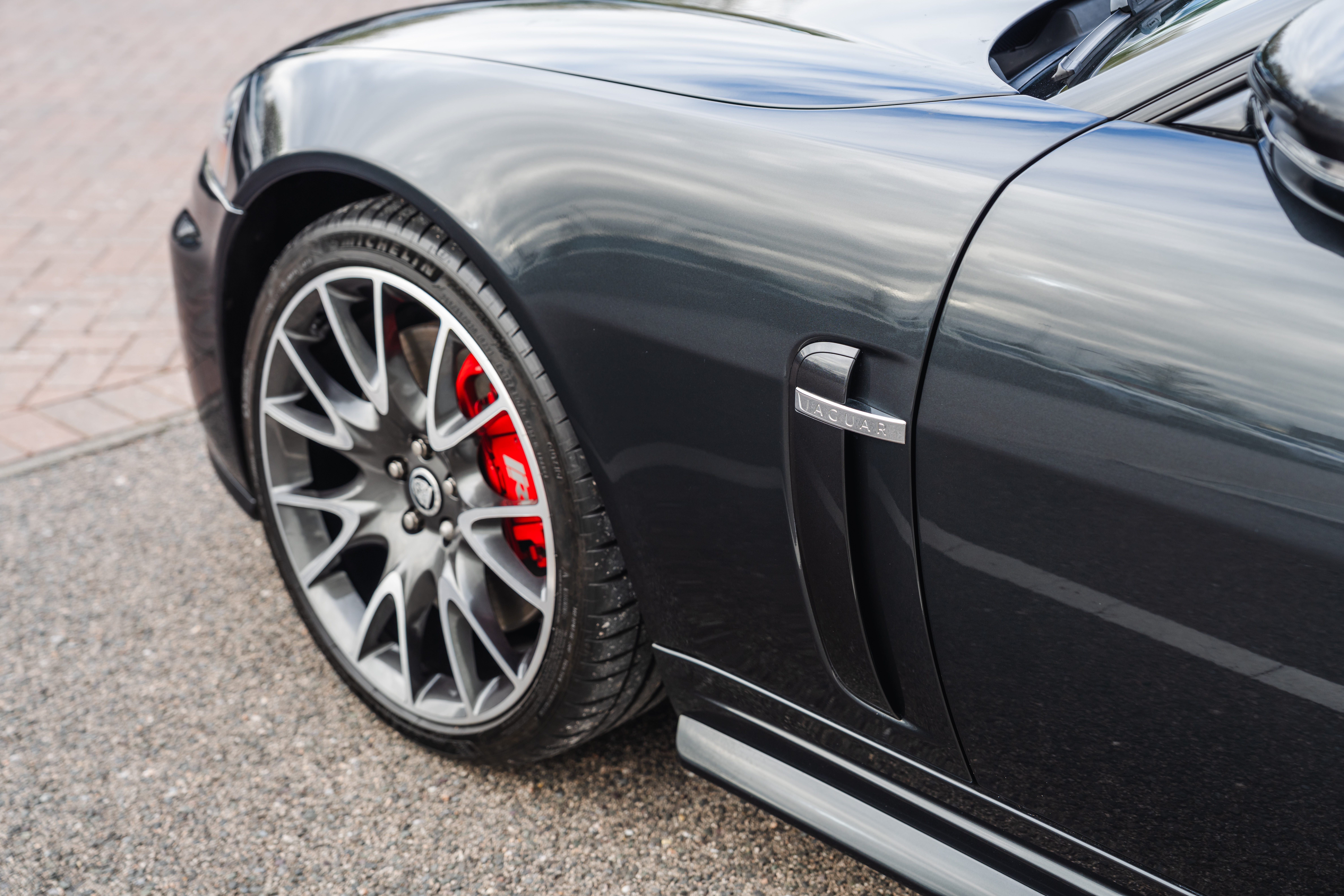 The XKR 75 featured a new Stratus Grey finish. Red brake callipers contrast the eye catching 20 inch gloss Vortex forged lightweight alloys with a dark technical finish and diamond turn.  Production was limited to just 75 cars worldwide.
