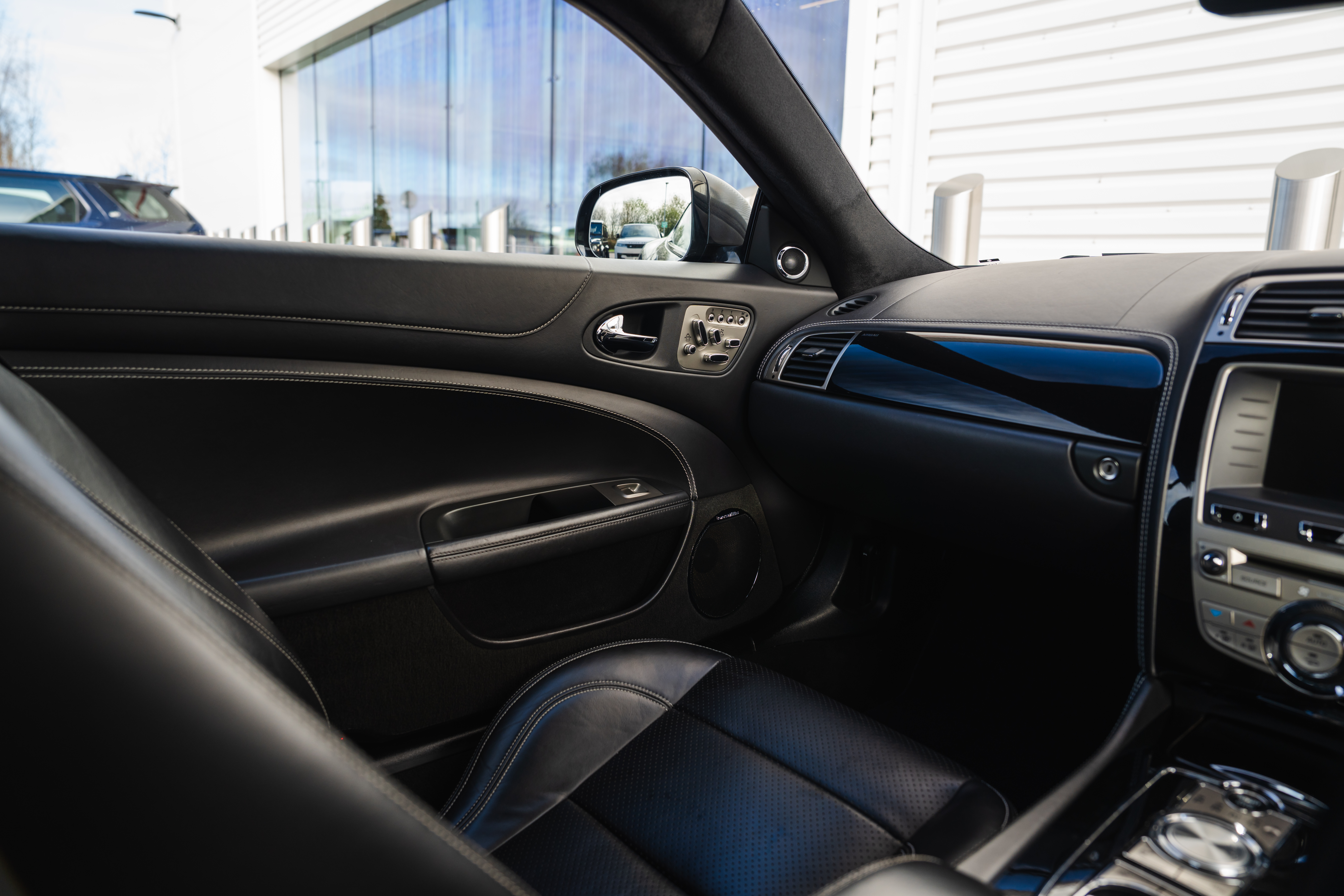 The Jaguar XKR 75 features revised suspension and handling for increased precision and agility in addition to the performance enhancements. To ensure the XKR 75 remains stable at high speeds, a revised aerodynamic body pack with a front splitter, side sills extensions, a rear diffuser and larger rear spoiler provide increased balance and a reduction in lift. The XKR's computerised Active Differential Control also adjusts to reduce steering sensitivity at very high speeds, further improving stability and driver control. With an improved acoustics package for the semi active sports exhaust, the XKR 75 produces a pulse racing growl to match its performance.