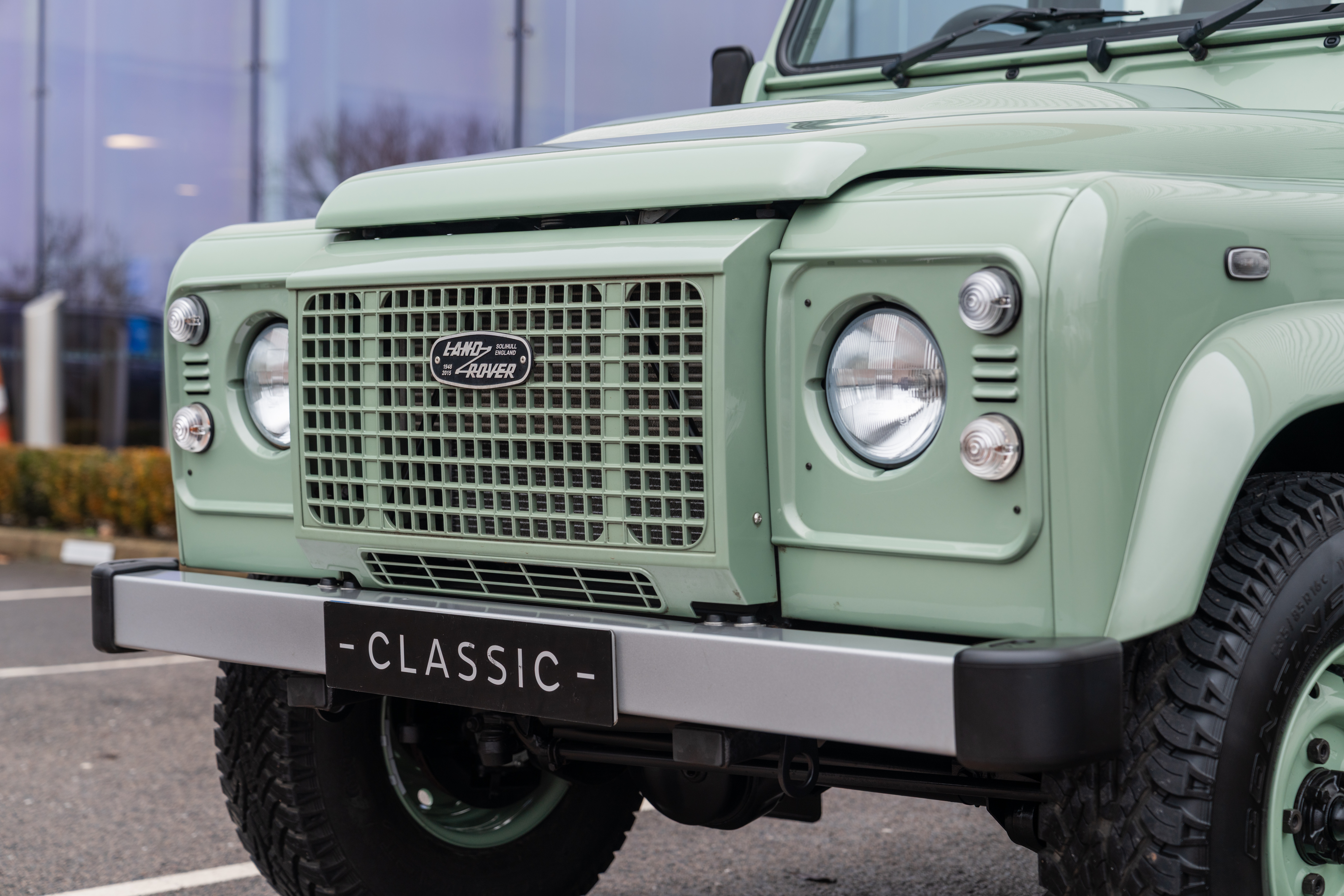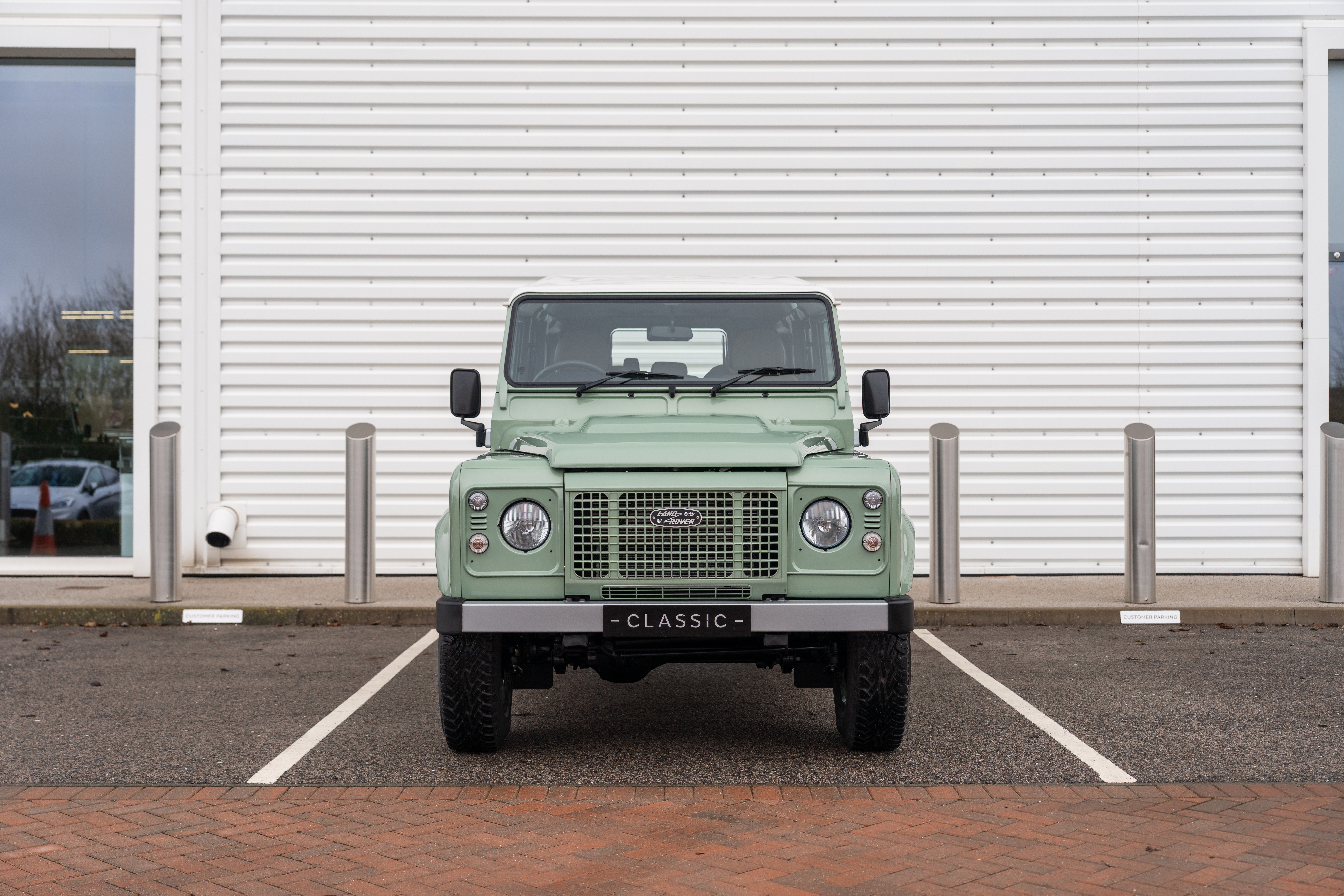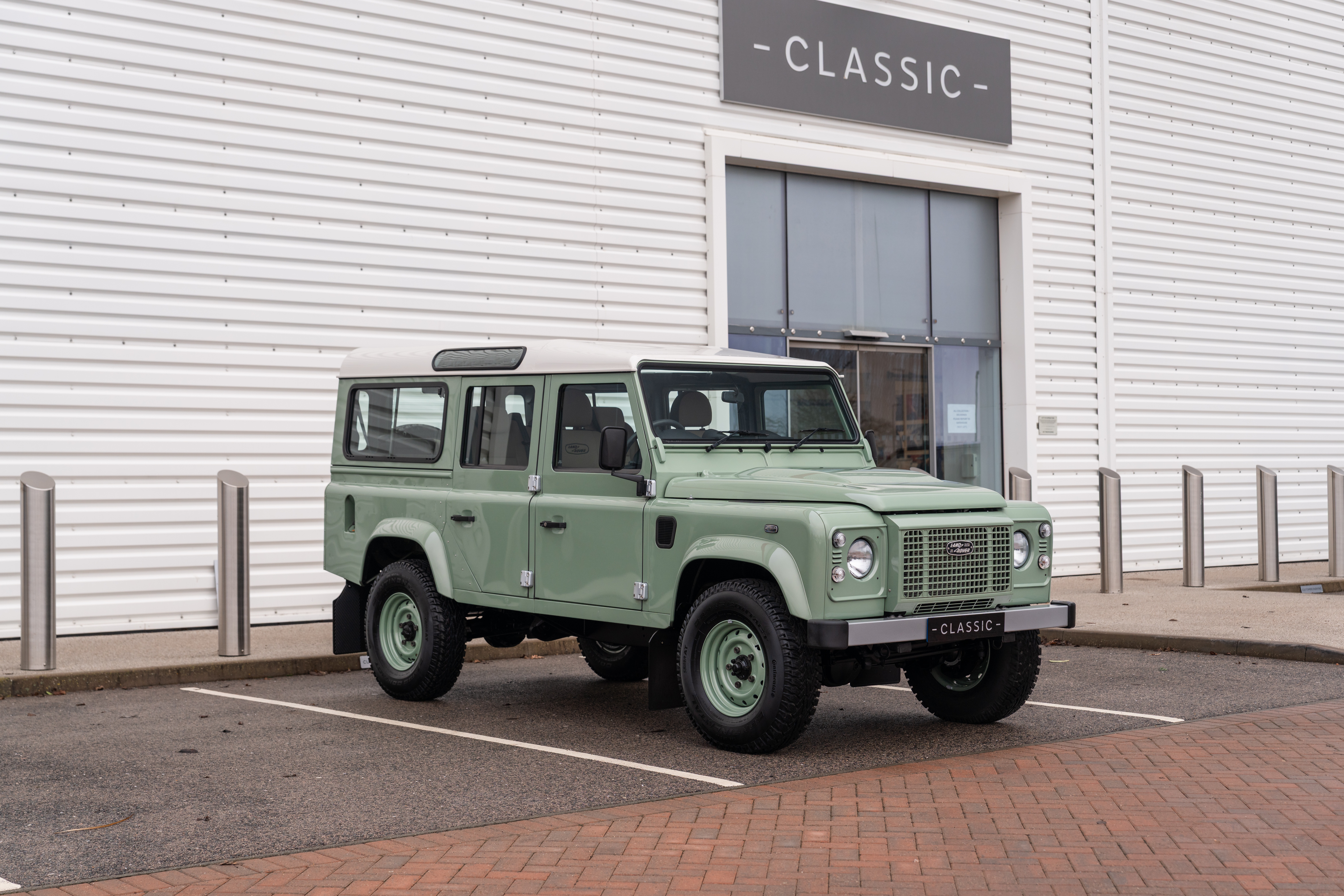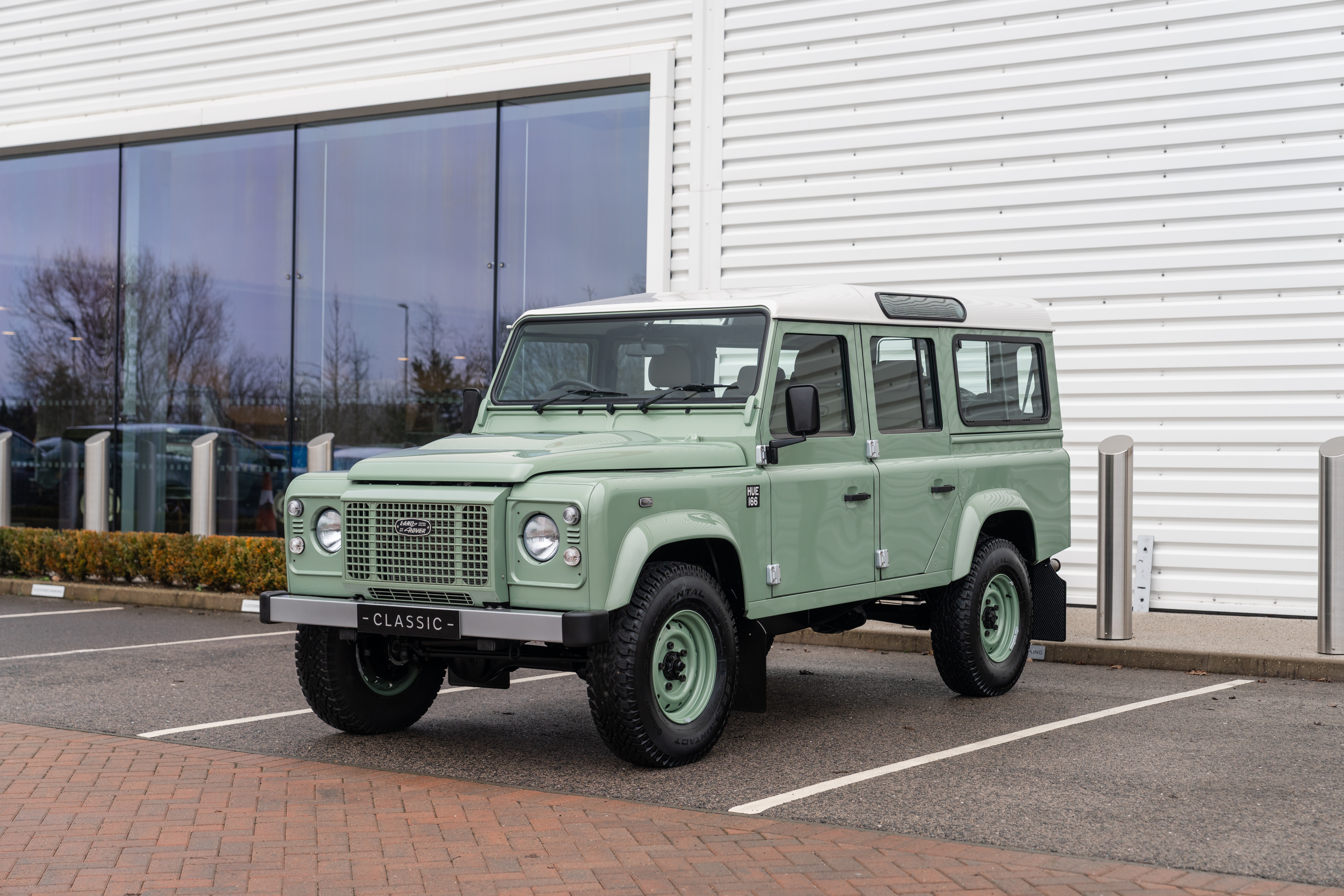 This particular vehicle is a 2015 110 that has covered just over ten thousand miles. It has had just one owner from new, and the car has spent a large part of the last ten years in storage whilst its owner has been working overseas. Now available to purchase directly from Land Rover Classic. The vehicle has been prepared for sale in Land Rover's own workshops and will be supplied with 12 months warranty and roadside assistance. The Land Rover also comes with a unique "HUE" numberplate.