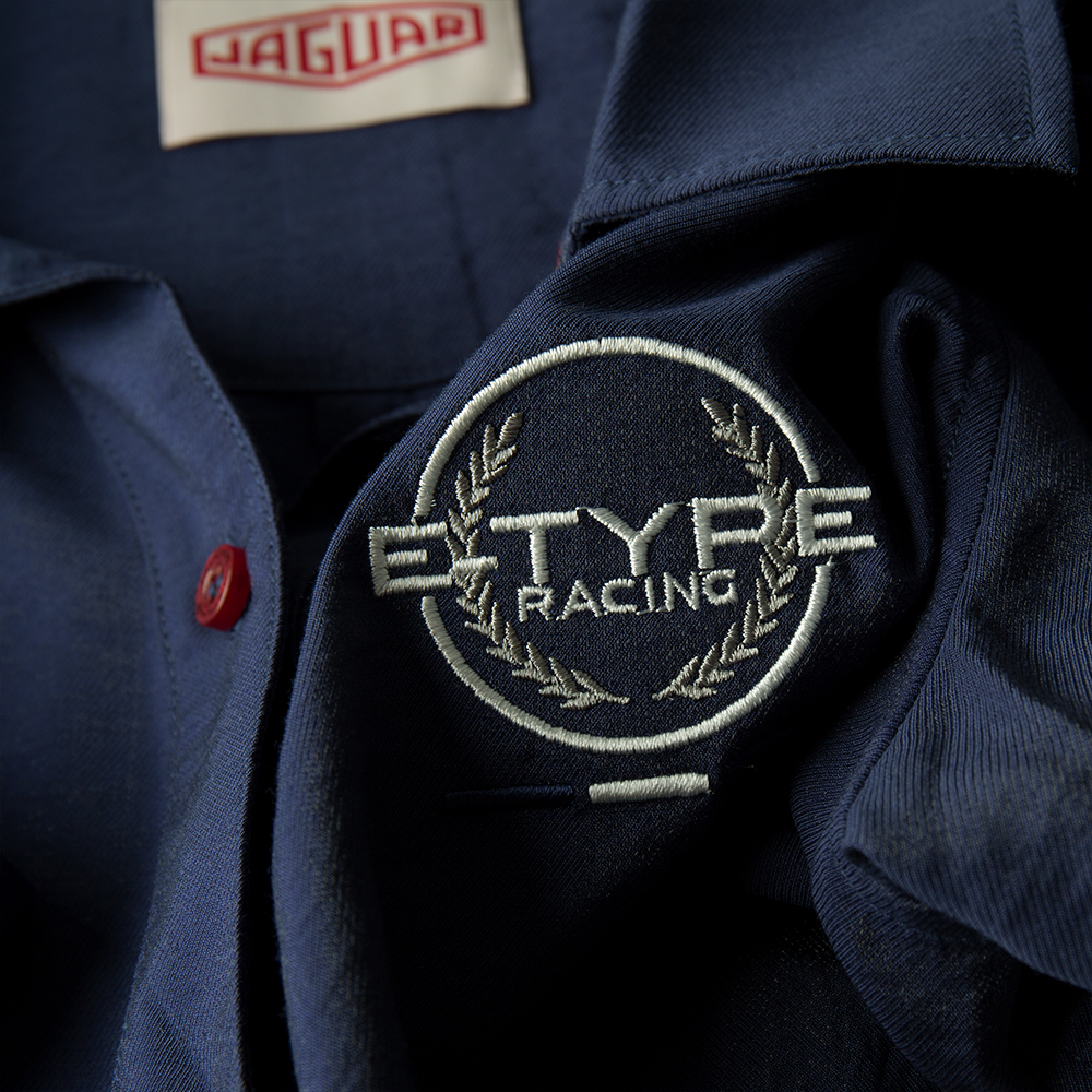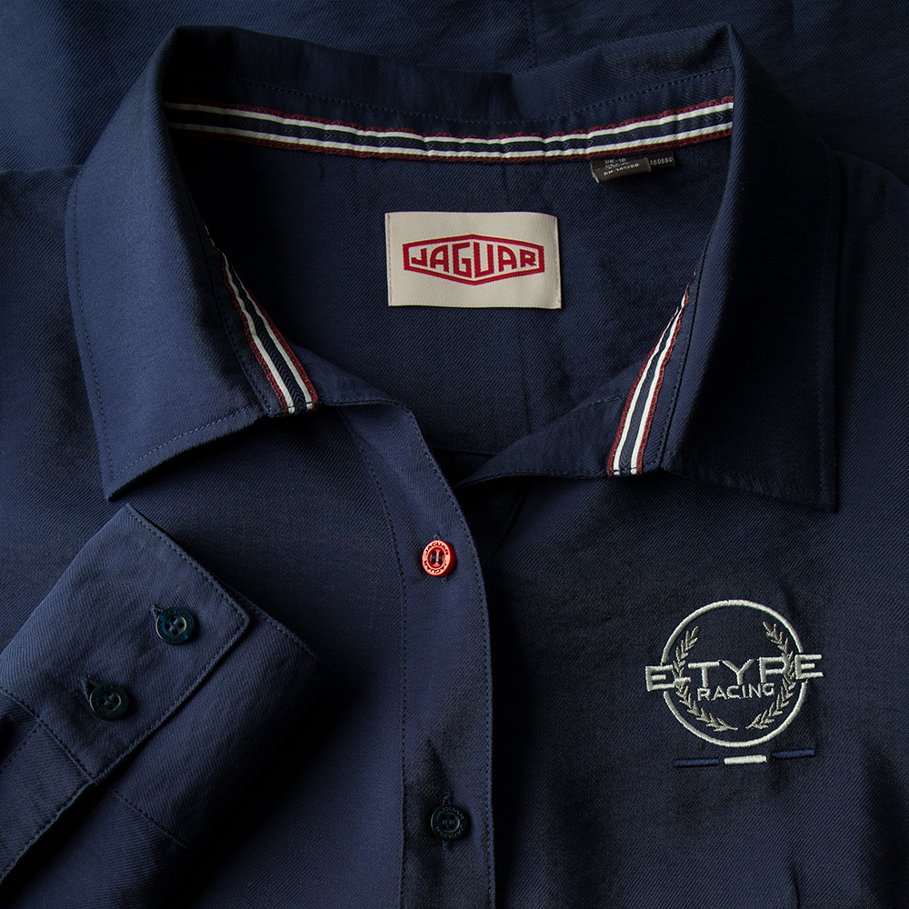 Navy Women's Shirt with a casual fit. Features E-Type Lightweight Racing branding, plus a 23 Roundel badge on the sleeve. Available in sizes 8 to 20.